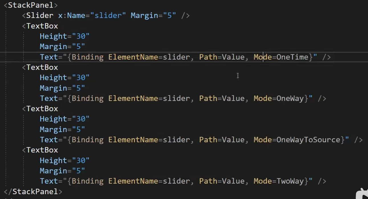 - OneWayToSource:源改变不会影响本身值,而控件会影响源